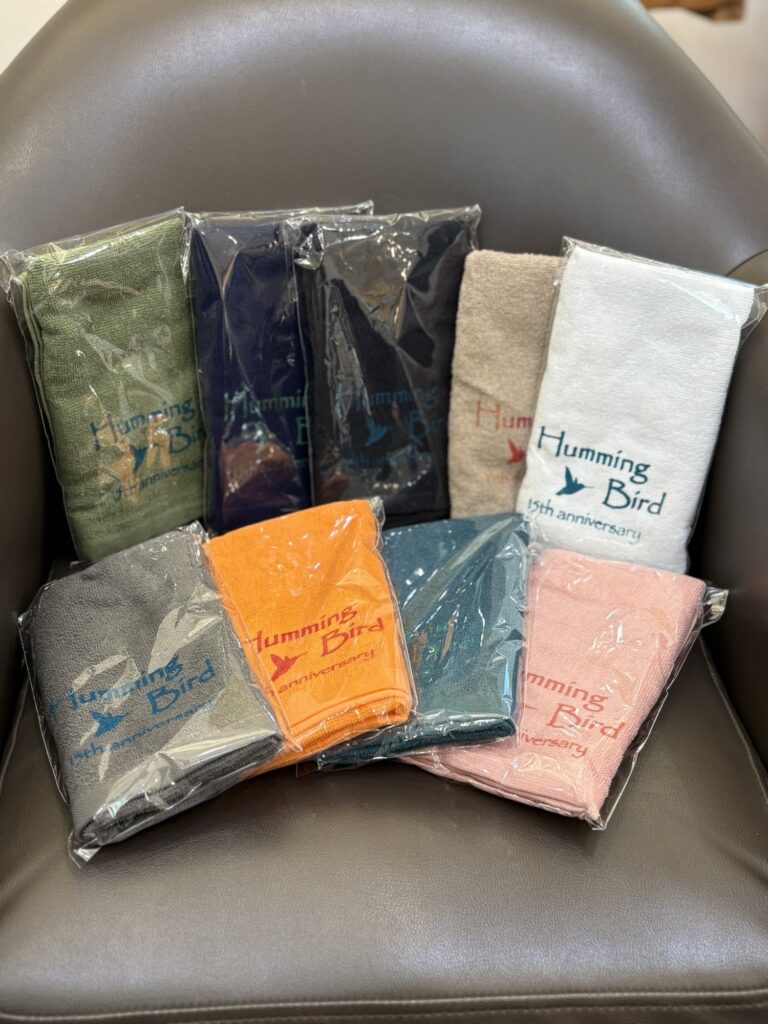 15thanniversary 2026 2/28 NEWS 2026-02-28 HummingBirdは2026/2/26で無事に15周年を迎える事ができました!これも何より全てのお客様のおかげだと心より感謝いたします^_^これからも全てのお客様が笑顔になれますように日々精進していきたいと思います♪今年は5年ごとに作っているオリジナルタオルをご用意しております!お風呂ではもちろん、温泉や旅行の時、運動したあとなどにお使いください^_^(数に限りがありますのでご了承下さい)これからも一緒にたくさん笑いましょう^_^by HummingBird# NEWS anniversary ハミングバード ブログ よかったらシェアしてね! URLをコピーしました! URLをコピーしました!